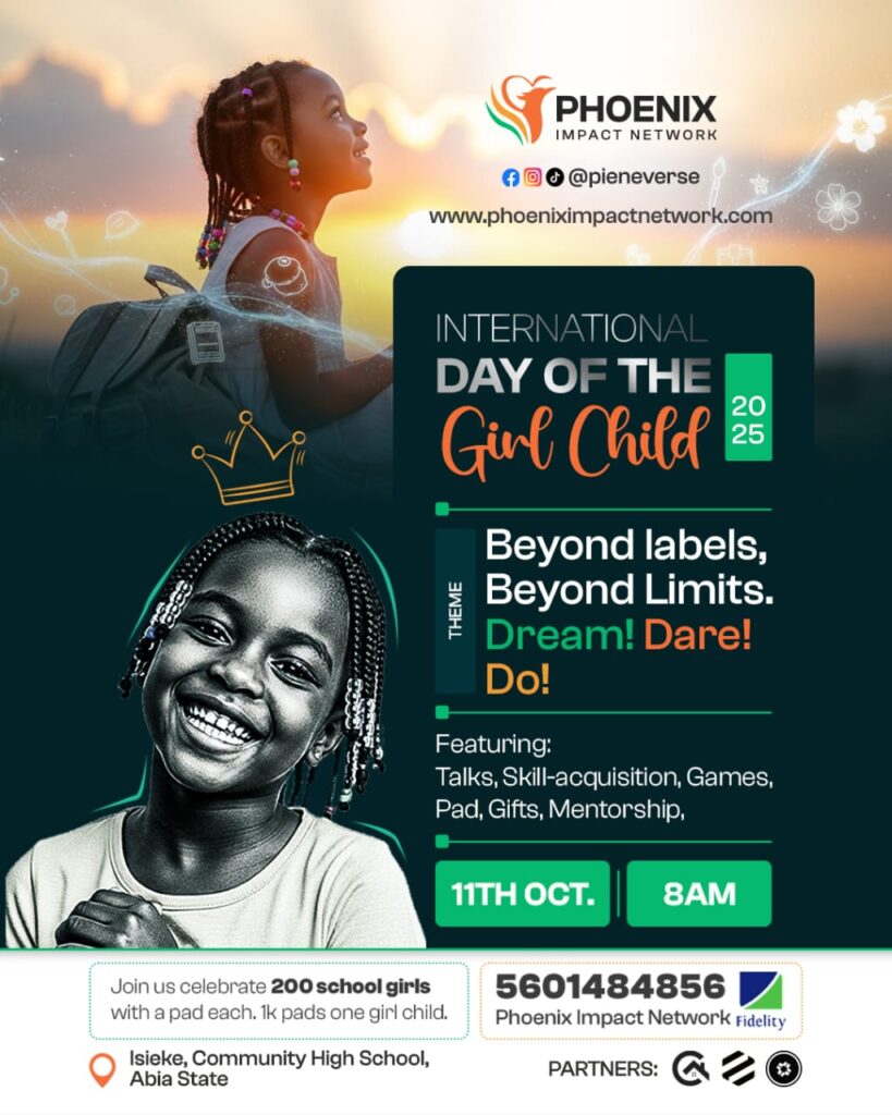 On October 11th, Phoenix Impact Network marked the International Day of the Girl Child in 5 states – Edo, Abia, Lagos, Enugu, and Port Harcourt . Through interactive discussions and workshops, we empowered 330 girls to reach their full potential. This effort underscores our commitment to transforming the lives of girls and shaping a brighter future for them.